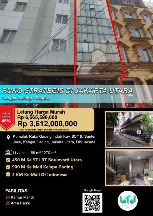 Kesempatan terbatas buat Anda dapatkan ruko nyaman dengan return investasi tinggi di Kelapa Gading, Jakarta Utara.