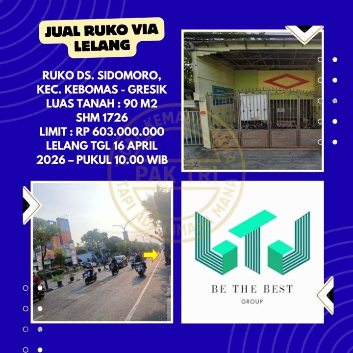 DIJUAL RUKO VIA LELANG DI DS. SIDOMORO, KEC. KEBOMAS - GRESIK - LELANG KPKNL