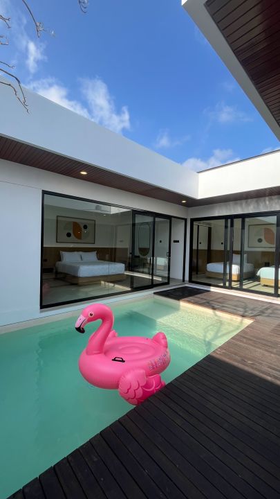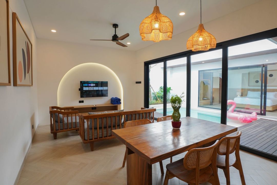 Villa ini dilengkapi dengan kolam renang pribadi, ruang tamu, dapur, dan kamar tidur yang nyaman.