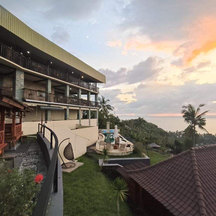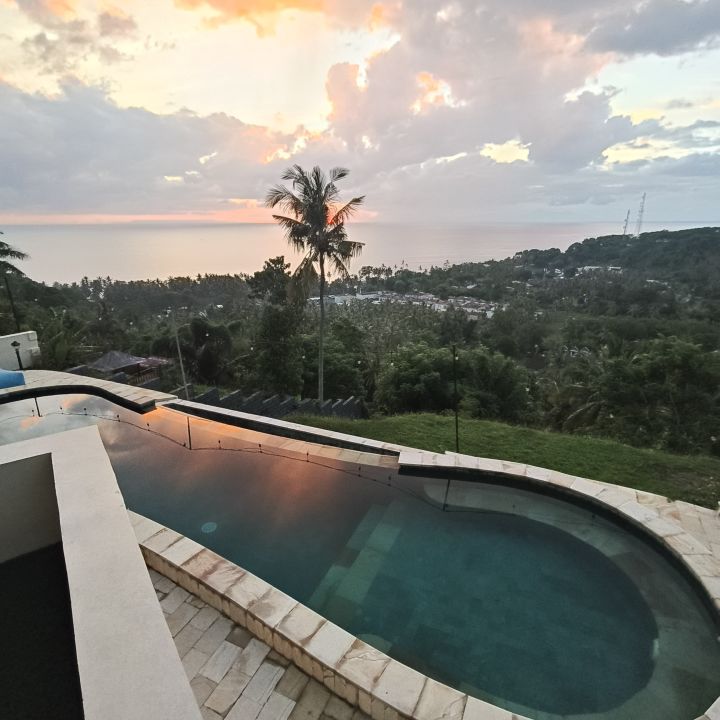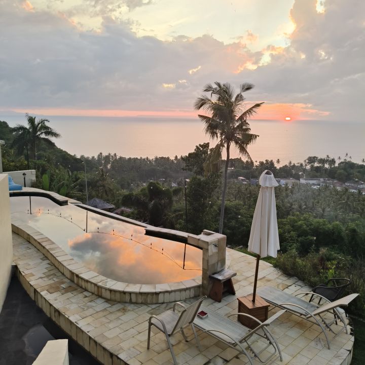 Expansive stunning sunset views across the Lombok Strait towards SW Lombok,